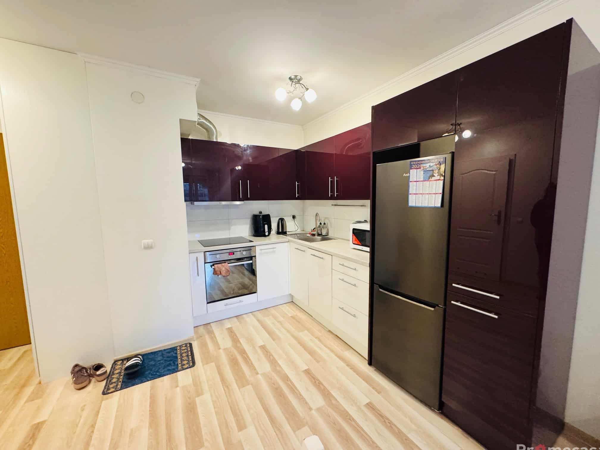 Mieszkanie wyposażone jest we wszystkie niezbędne sprzęty takie jak lodówka, zamrażarka, pralka, piekarnik, okap, mikrofala.