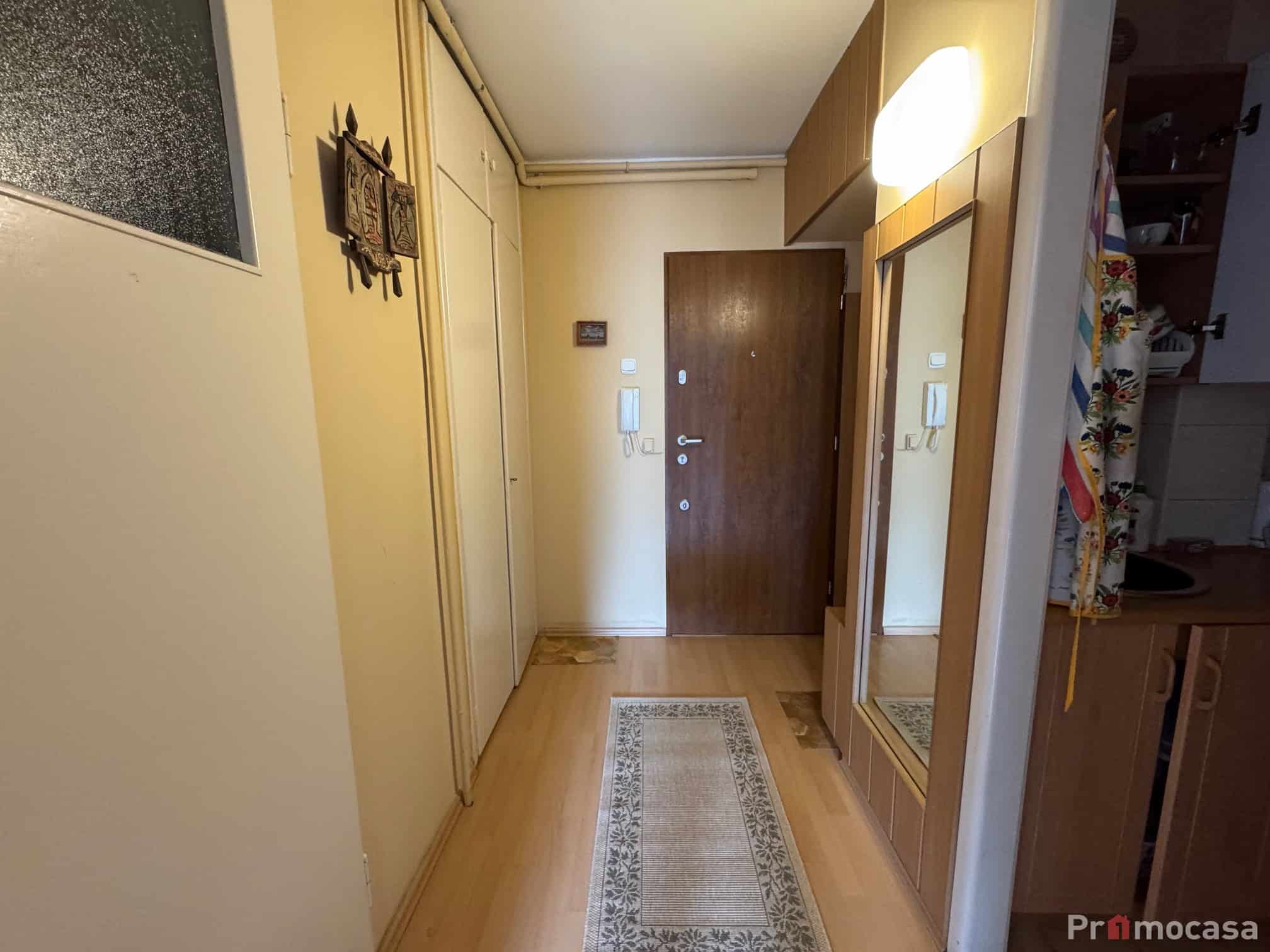 W skład mieszkania wchodzą: przedpokój, kuchnia, łazienka z WC oraz pokój z balkonem francuskim.