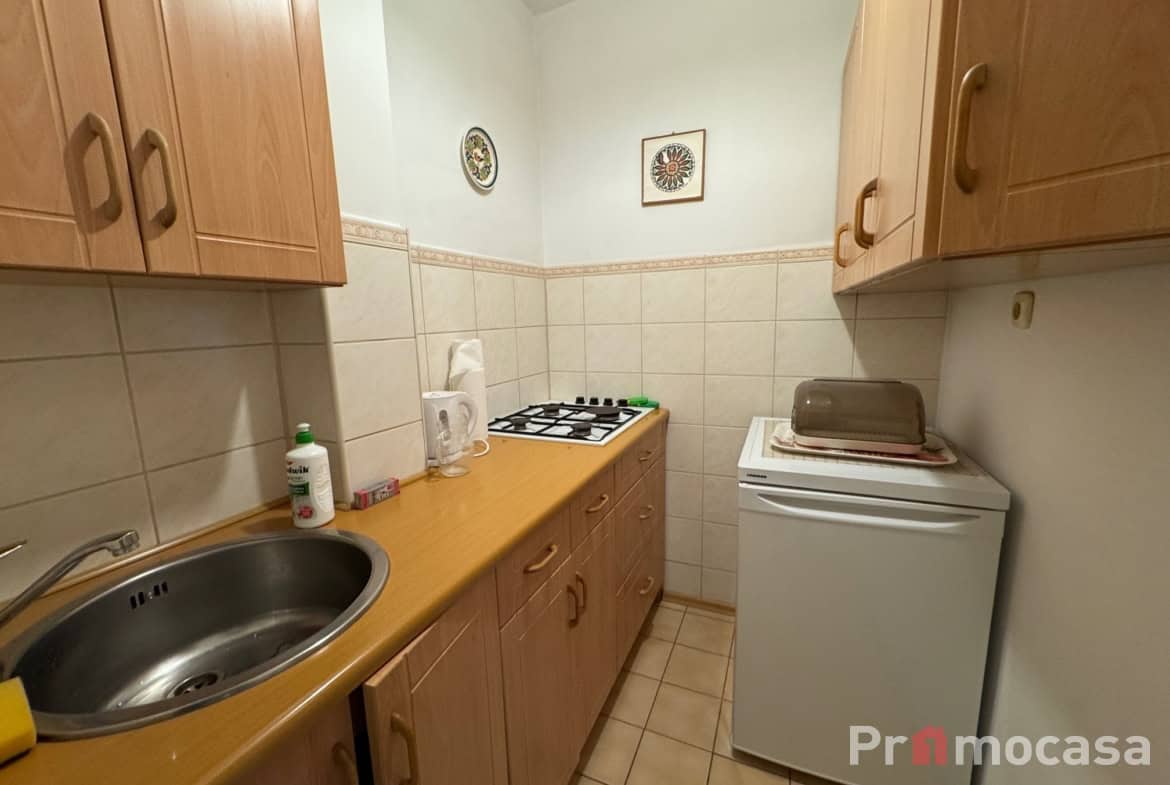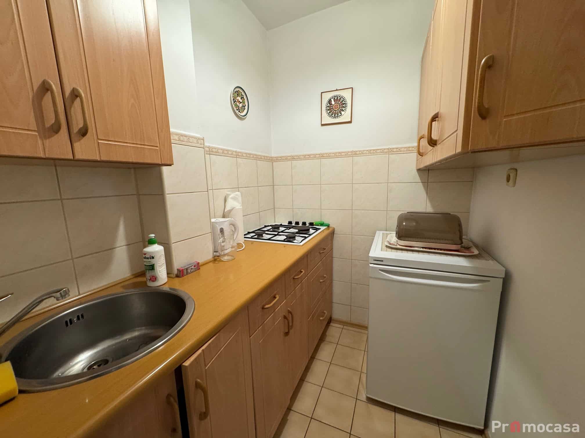 Mieszkanie wyposażone jest we wszystkie niezbędne sprzęty takie jak lodówka, zamrażarka, pralka, kuchenka gazowa.